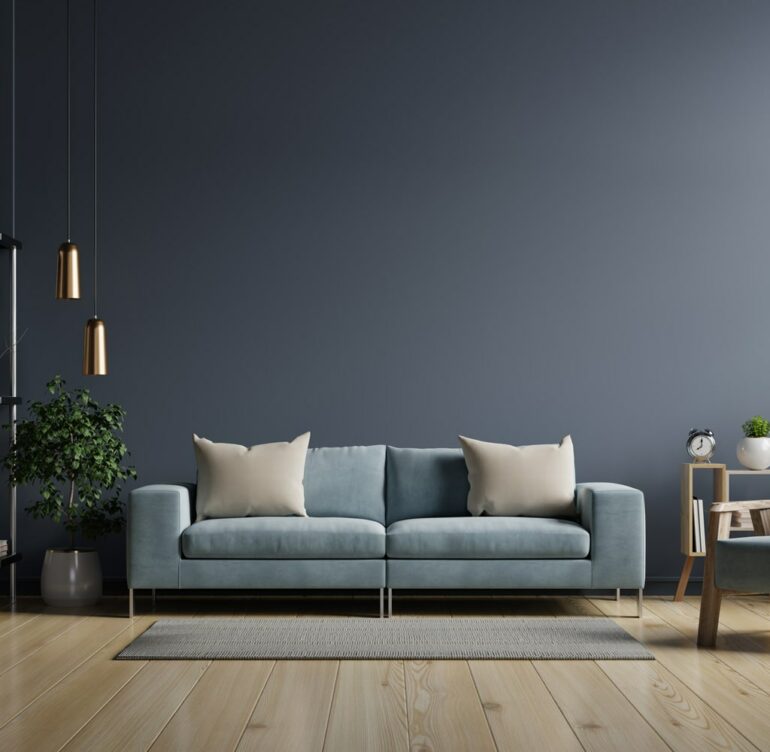 A stylish living room featuring modern and minimalist interior design elements with wooden finishes.